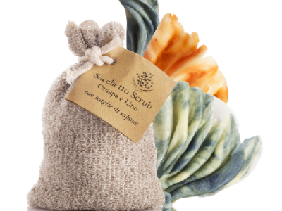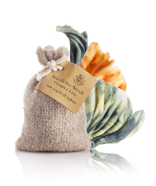 Sacchettino Scrub di canapa e lino con profumate scaglie di sapone, profuma anche la biancheria