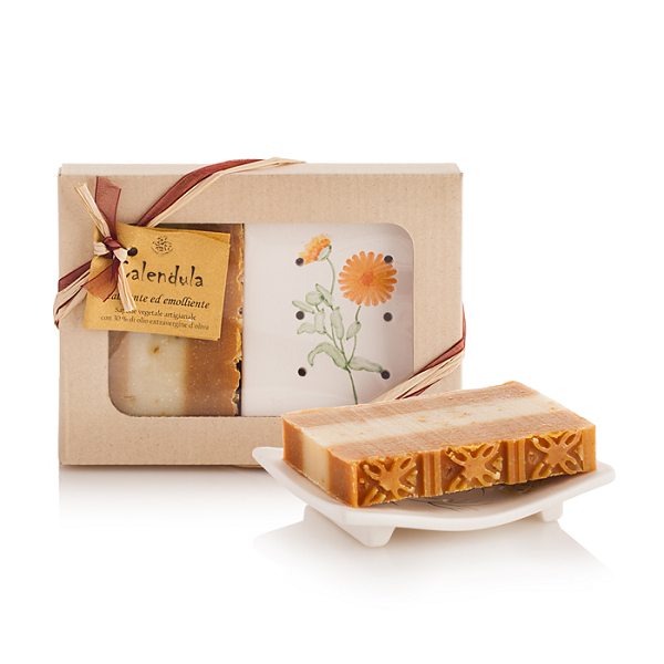 Portasapone in ceramica dipinto a mano con saponetta da 100gr in scatola regalo