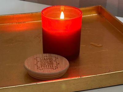 Candela di cera vegetale profumata alla cannella, dura circa 20ore.